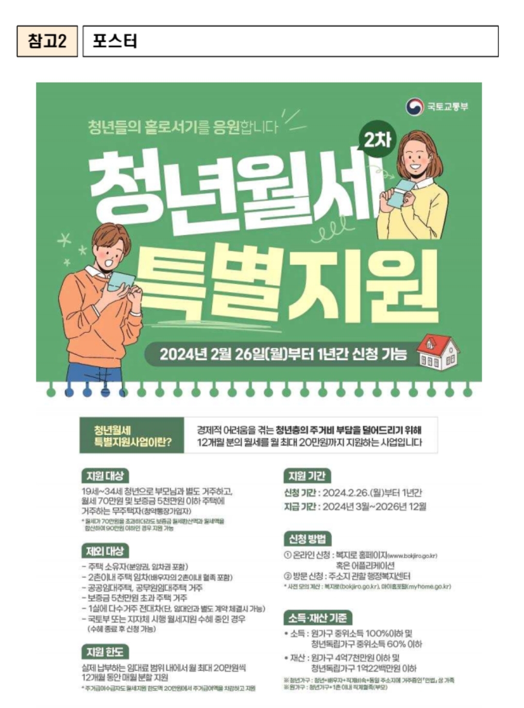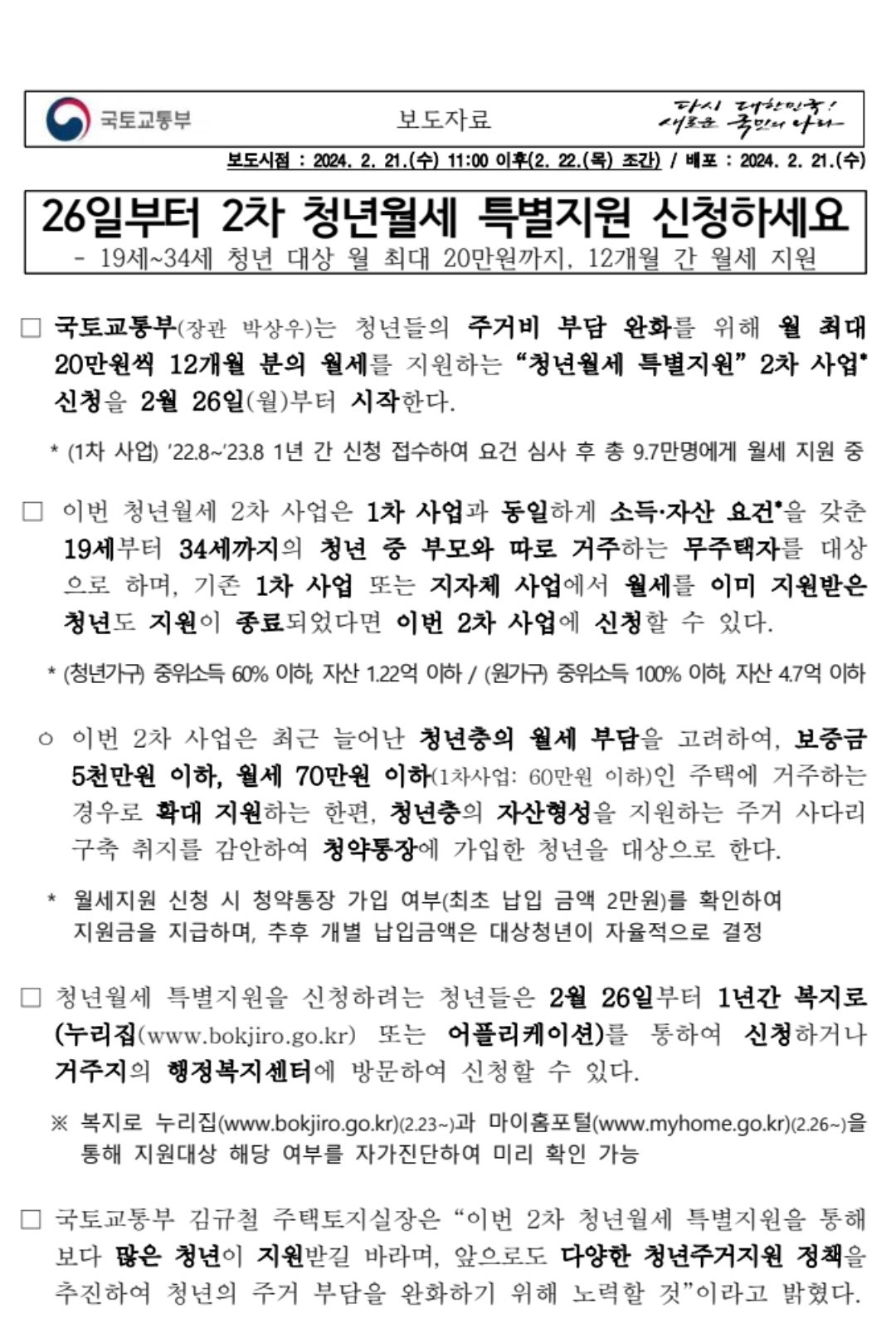 - 2024년 2월 26일부터 '2차 청년월세 특별지원' 신청 가능