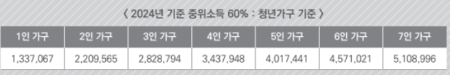 ⇒ 청년가구: 1인(본인), 1,337,067원 / 원가구: 3인(본인+부모), 4,714,657원