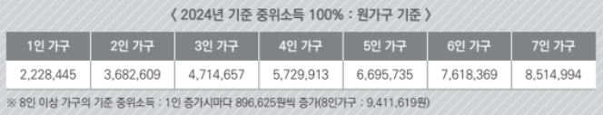 2024년 기준 중위소득표 입니다 .